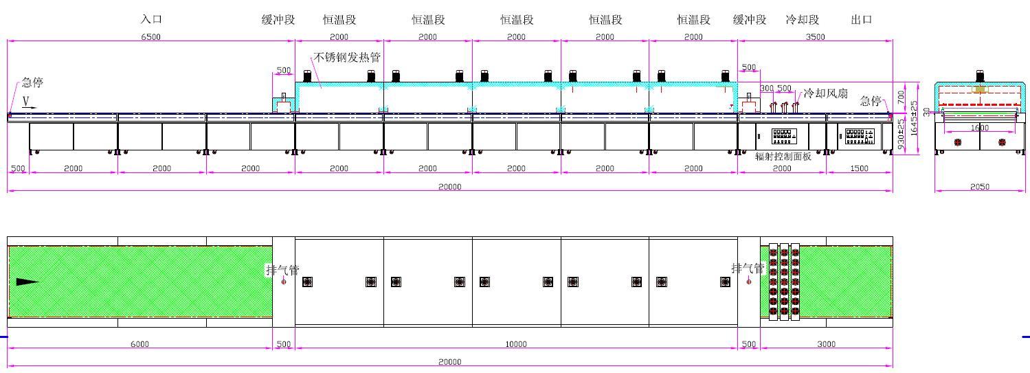 1. 采用不锈钢U形发热管(功率2000W、220VAC) 2. 发热管安装在工件上方