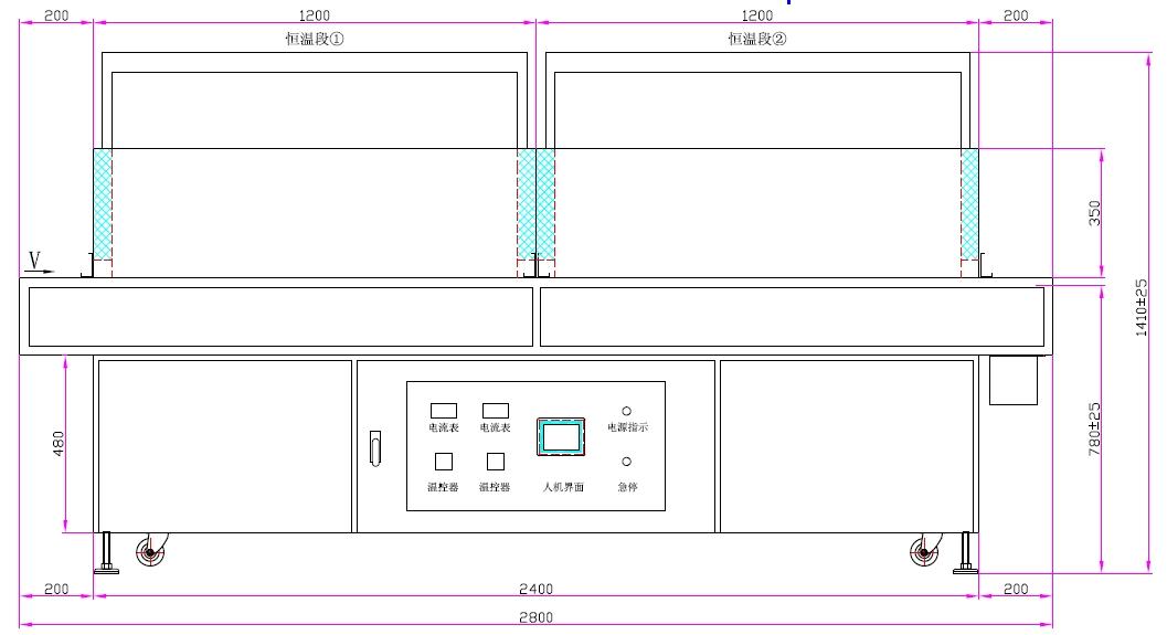 2、加热温度:室温~120℃ | 3、温区:2段(循环风方式加热) |