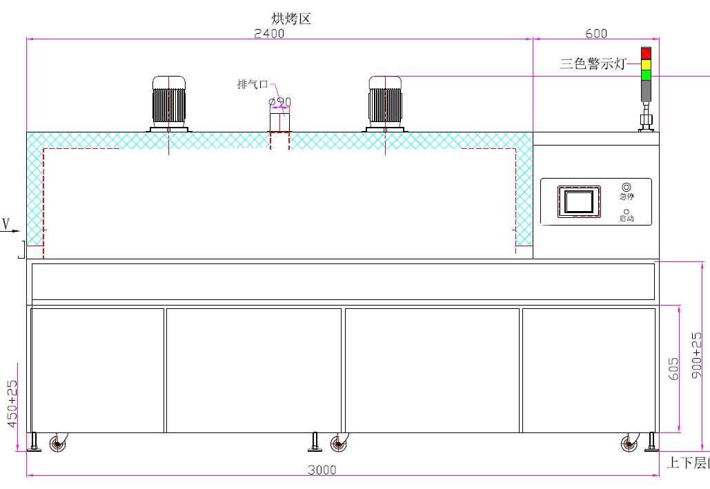 3、采用热风循环风式加热 4、人机界面触摸屏控制(7寸威纶屏+汇川PLC)