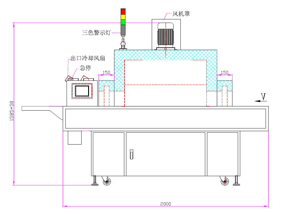 5、输送带宽度:600mm | 6、上箱体设计:可电动打开,便于维修 |
