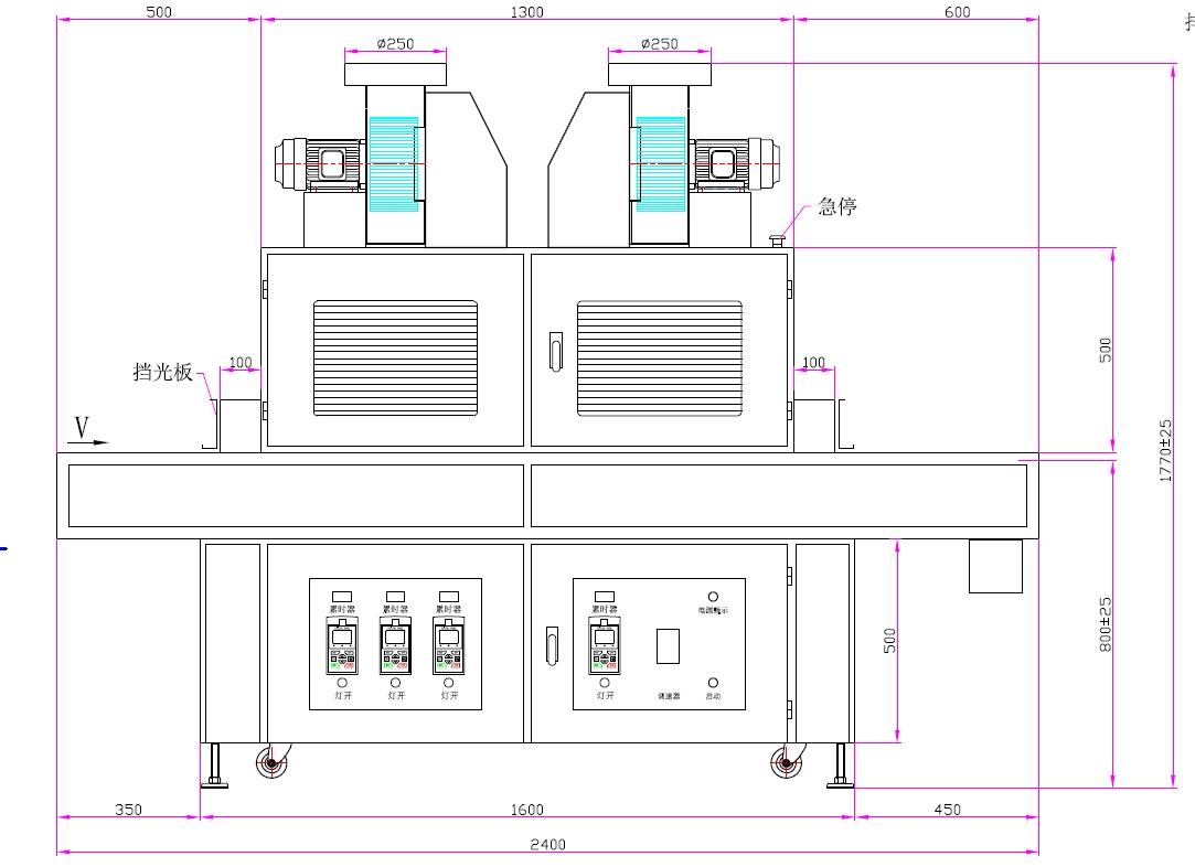 | 1、UV灯功率:7.2kw4支(铁灯1支、镓灯1支、汞灯2支) | 2、UV灯总长:420mm、弧长300mm |
