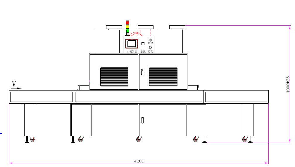 1. UV灯功率:15kw*3支(UV卤素灯) | 2. UV灯总长:1650mm、弧长:1550mm |