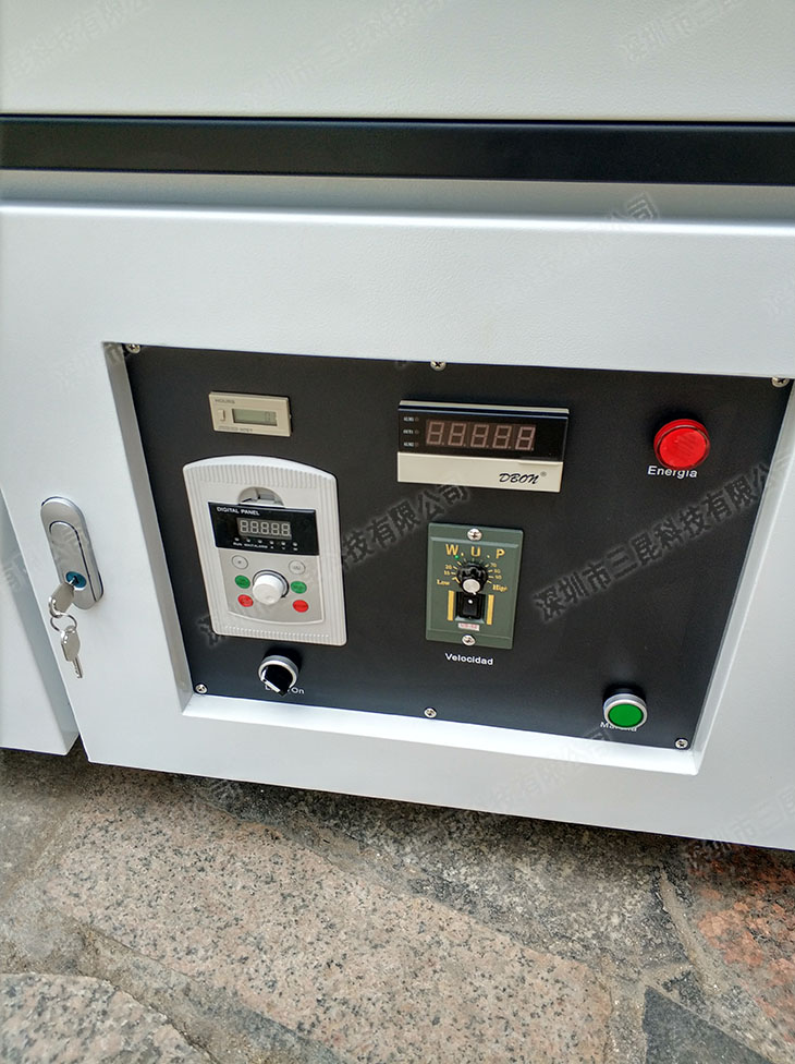 7、灯箱升降采用手轮调节 (30-300mm可调) | 8、采用上排风系统 |