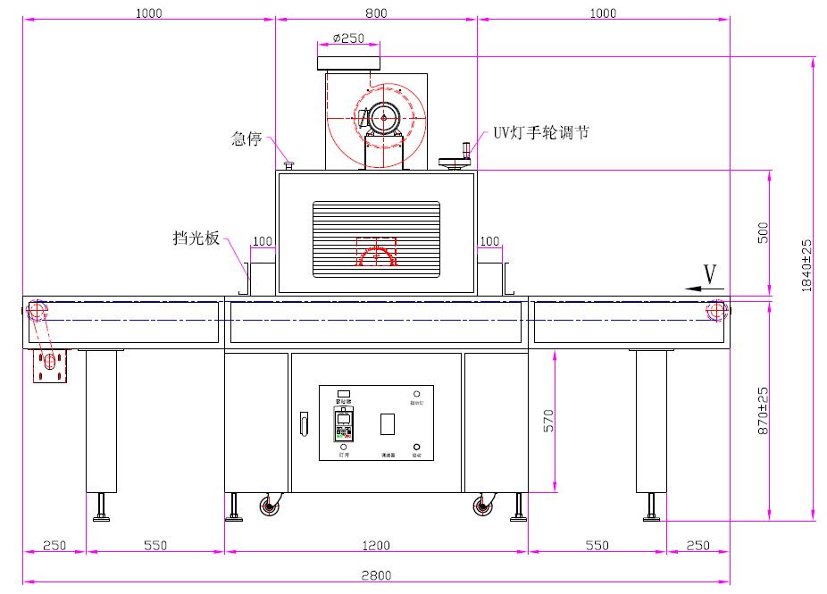 9、输送速度:1~15m/min | 10、入口高度:100mm |