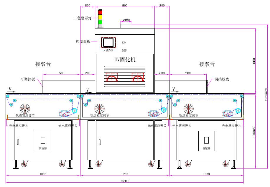 1、UV灯功率:3.0kw*2支(汞灯) | 2、UV灯总长:620mm、弧长:500mm |