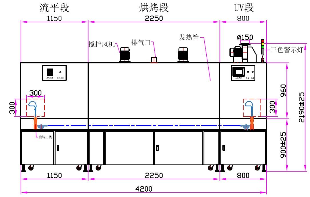 2、发热管安装在工件上方 | 3、采用变频器调速 |