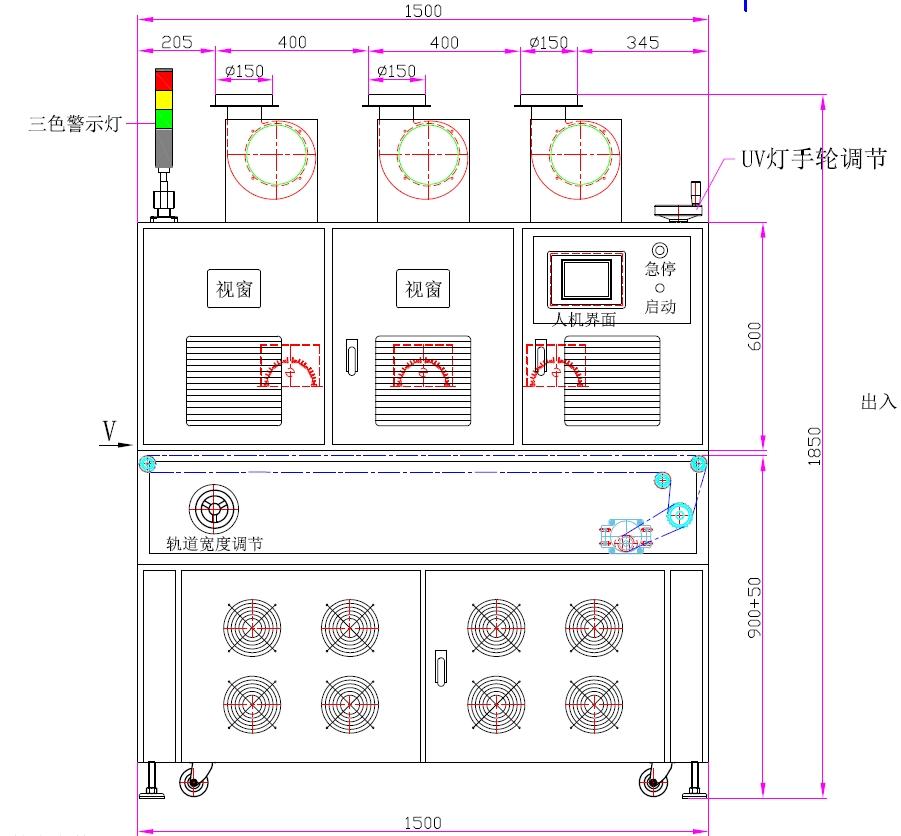 1、UV灯功率:6.0kw*3支 | 2、UV灯总长:620mm、弧长:500mm |