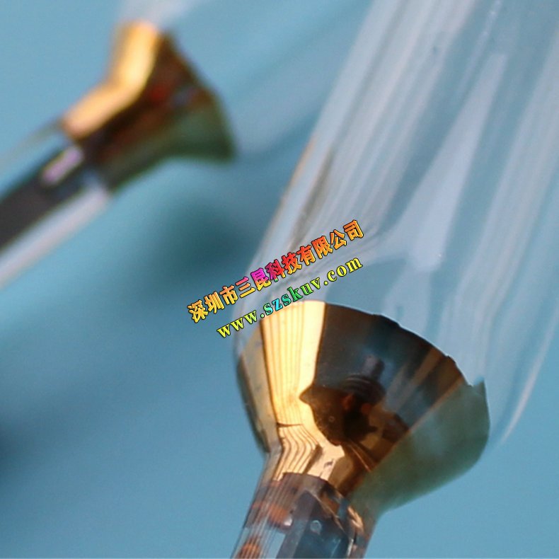 UV固化灯简称UV灯,又称紫外线灯管、紫外线固化灯。一般含有水银和氩氙等气体,灯管壁由能使紫外线大量穿透的高纯度石英制成,是高强度气体放电灯的一种。原理:借助于灯管启动后 两极放电迫使灯管内电子、原子、离子之间发生互相碰撞,激发灯内汞蒸汽和氩气放电而产生连续辐射。波长:此类紫外线灯具有高功率密度和有效的紫外线光波,波长范围在310nm~420nm之间, 最高
